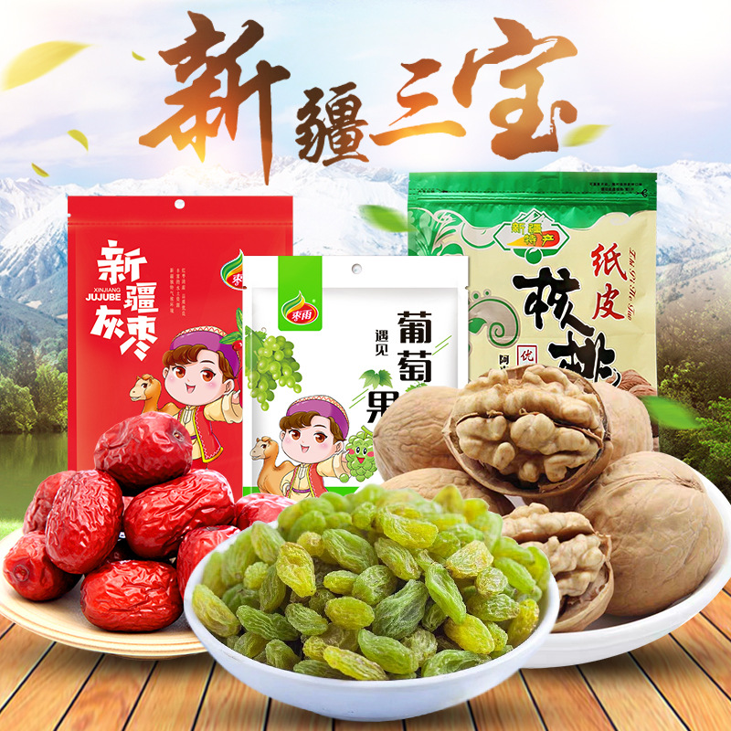 若羌红枣500g*1袋,葡萄干500g*1袋,核桃500g*1袋