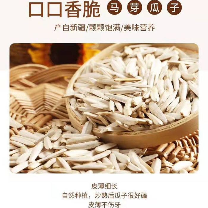 • 商品名称:新疆阿克苏特产马牙瓜子尖尖的下巴干炒原味500g*2袋