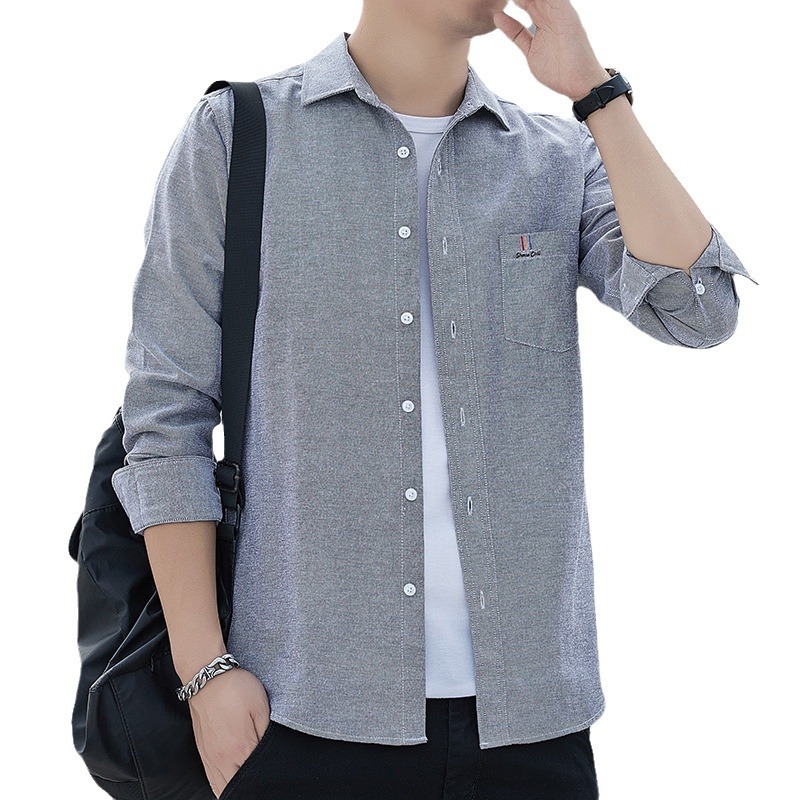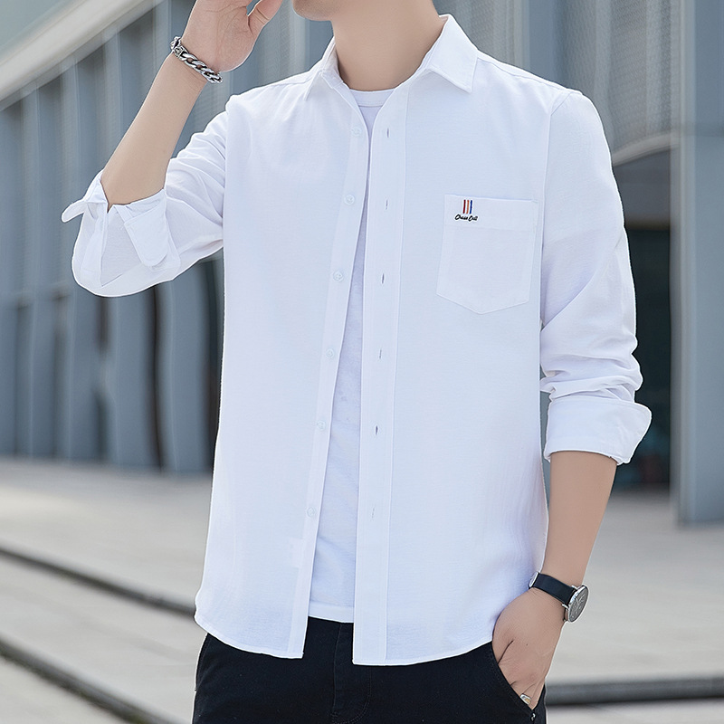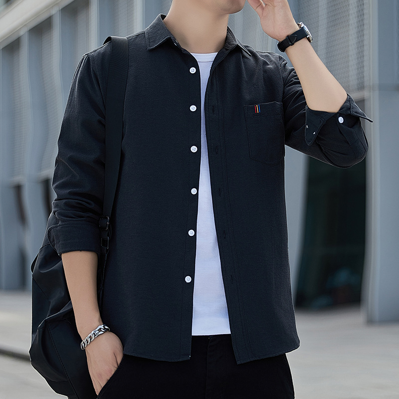 • 商品名称:春秋季新款长袖衬衫男士寸衫外套免烫潮牌黑色商务青年休闲衬衣男