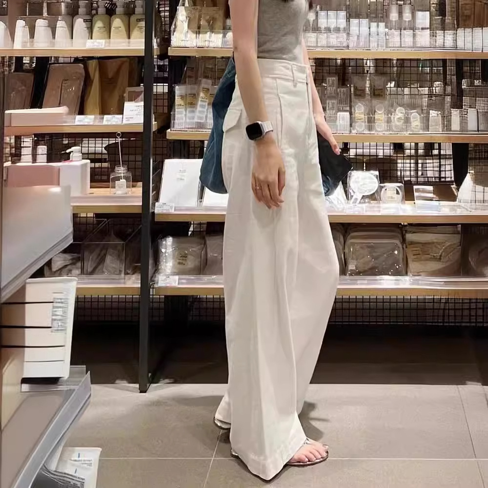 • 商品名称:2024秋季新款小个子白色棉麻阔腿裤高腰垂感显瘦直筒休闲裤子女装