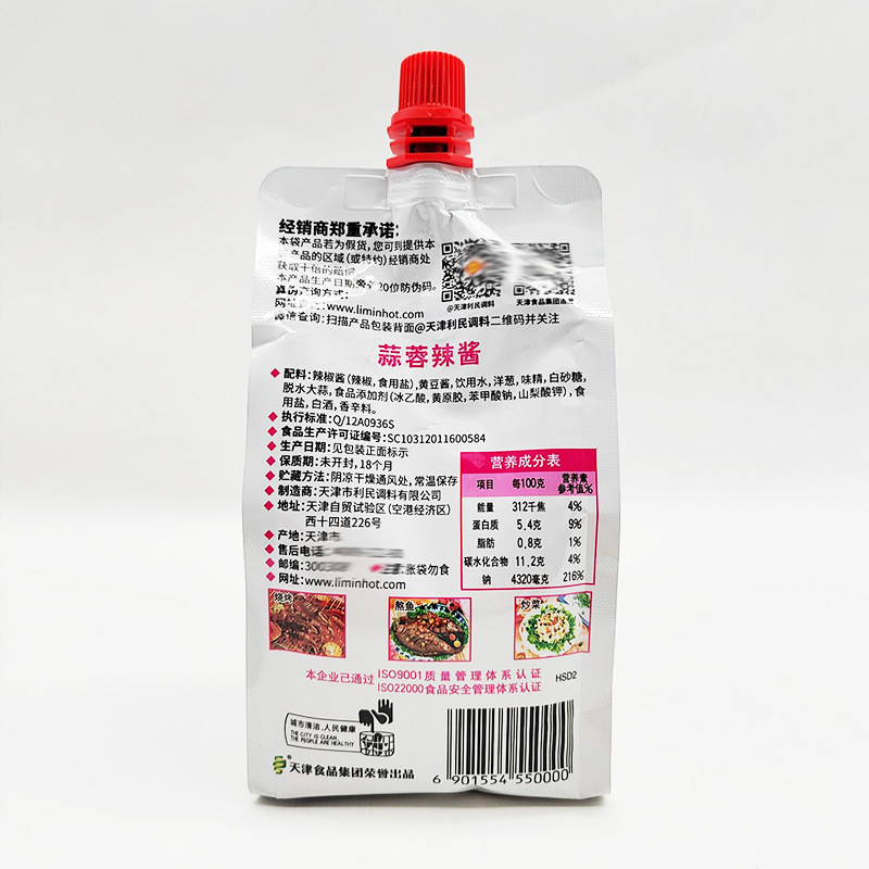 • 商品名称:天津利民蒜蓉辣酱450g*2袋香辣蘸酱下饭拌面酱火锅烧烤卷饼调味酱