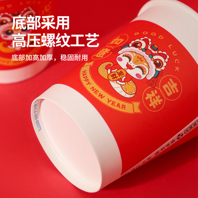 2025蛇年纸杯一次性茶水杯子加厚家用新年春节过年红色年货