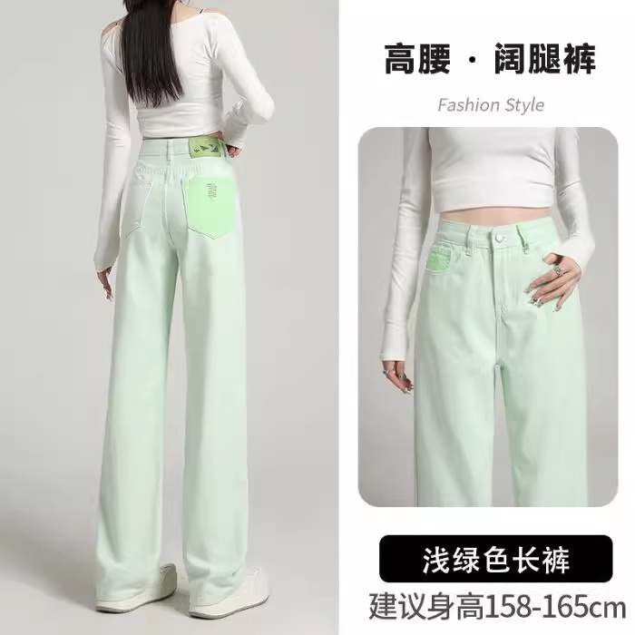 • 商品名称:2025年春夏新款撞色直筒牛仔裤女高腰垂感百搭气质显瘦窄版阔腿裤
