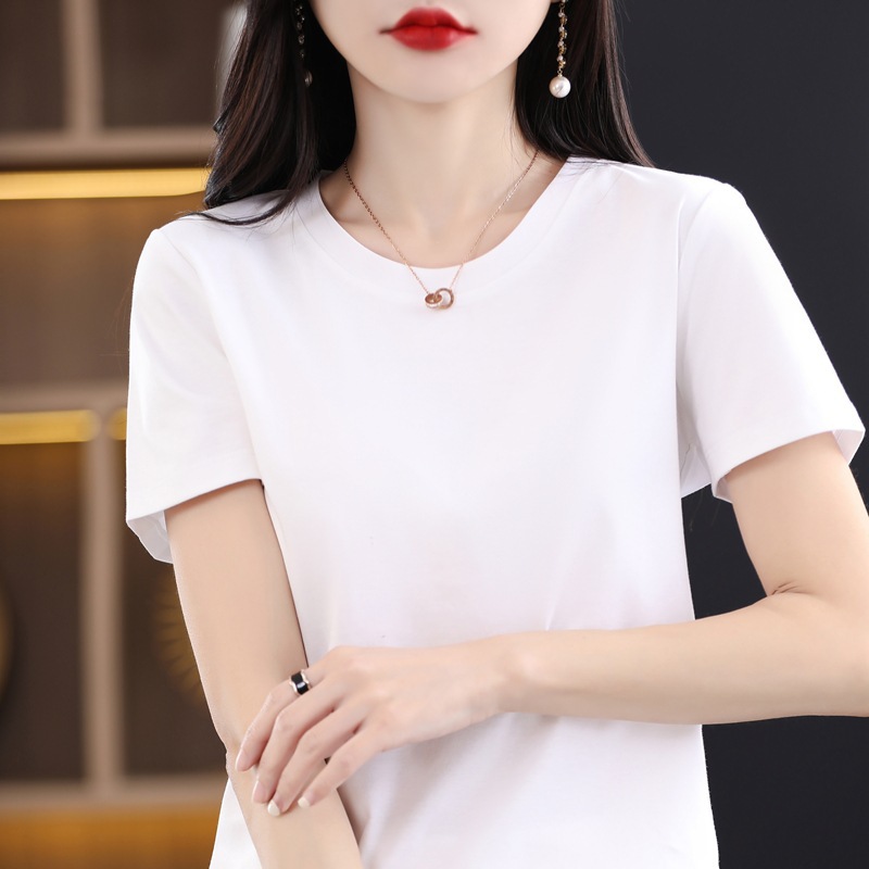 • 商品名称:80支丝光棉t恤短袖女夏季新款圆领基础上衣精梳棉白色体恤