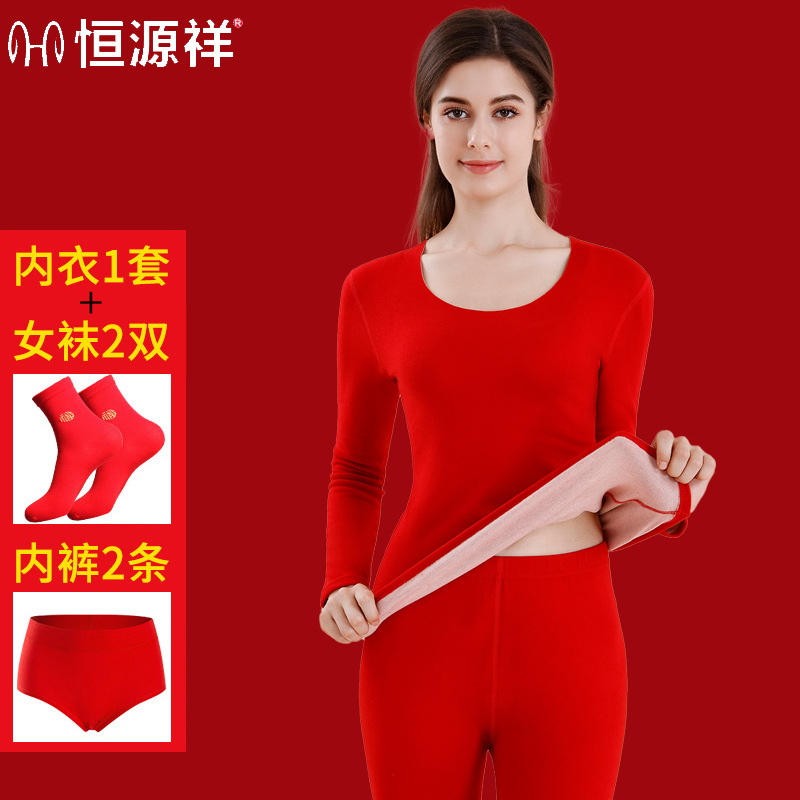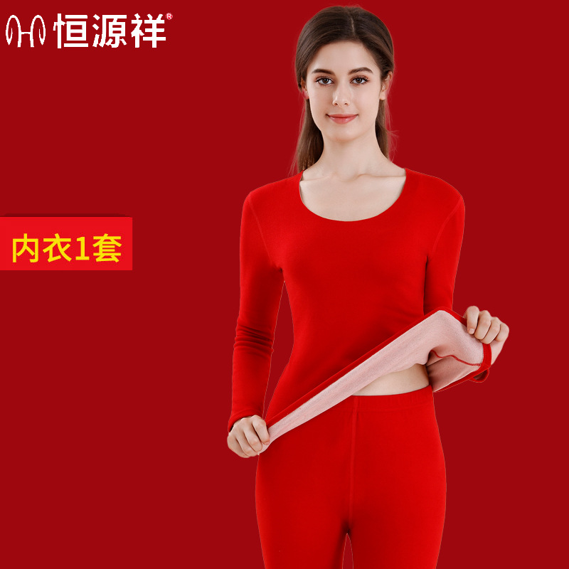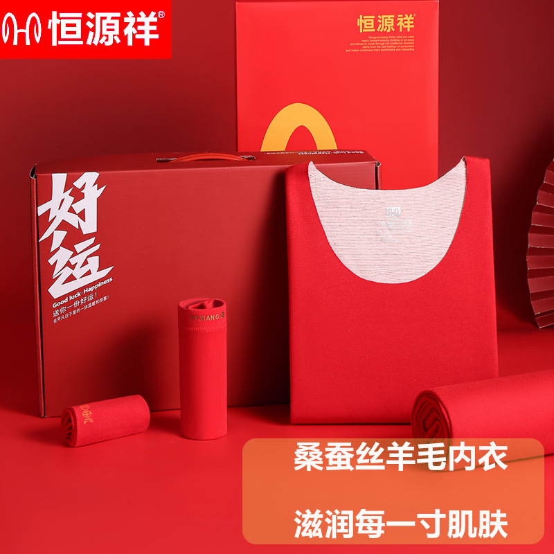 • 商品名称:羊毛双面磨绒秋衣秋裤套装男女本命年大红色保暖内衣礼盒装