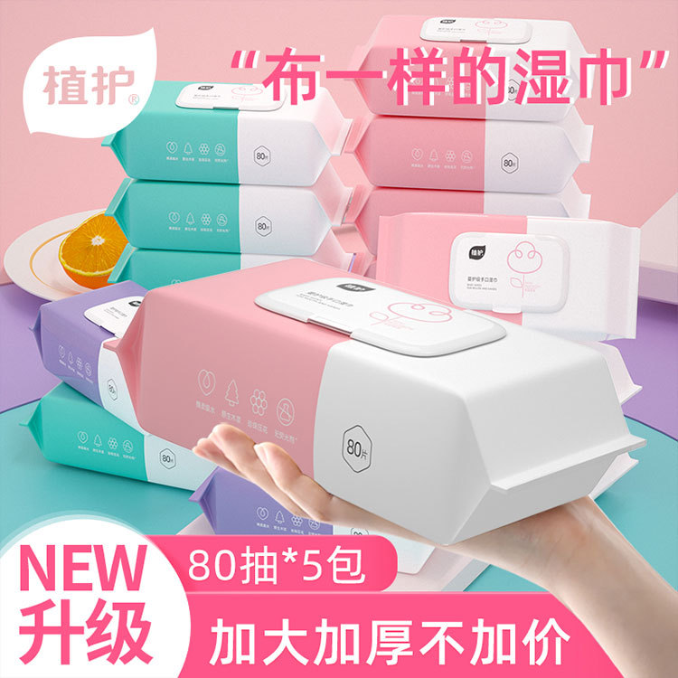 植护湿巾婴儿80抽*5包装手口湿纸巾宝宝带盖一次性清洁湿巾纸
