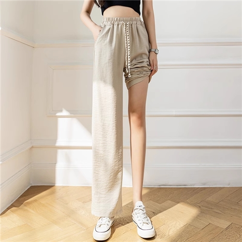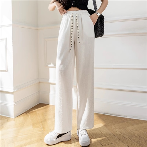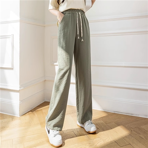 冰丝棉麻阔腿裤女夏季薄款亚麻女裤高腰垂感宽松休闲九分直筒裤子