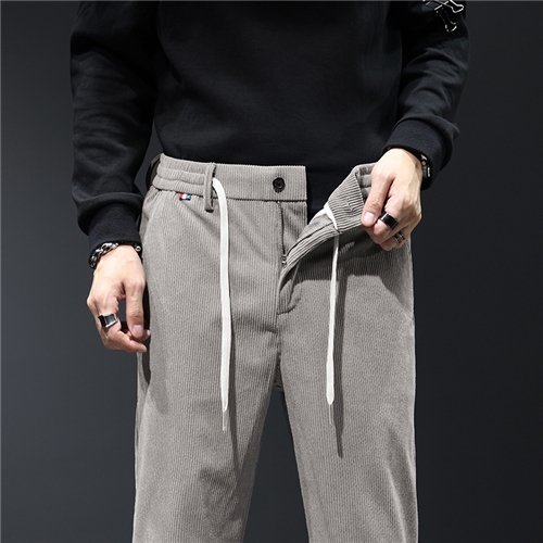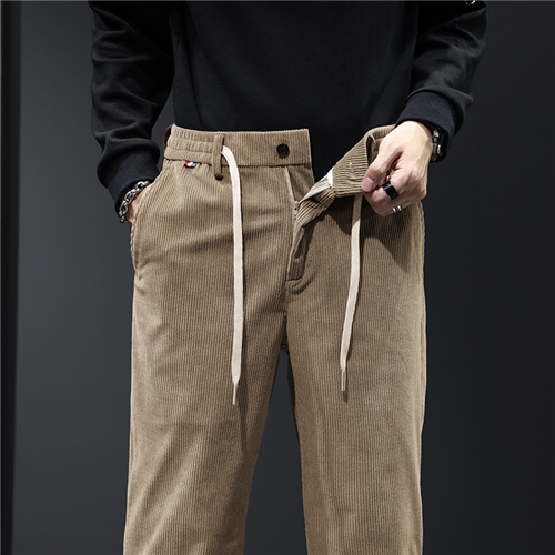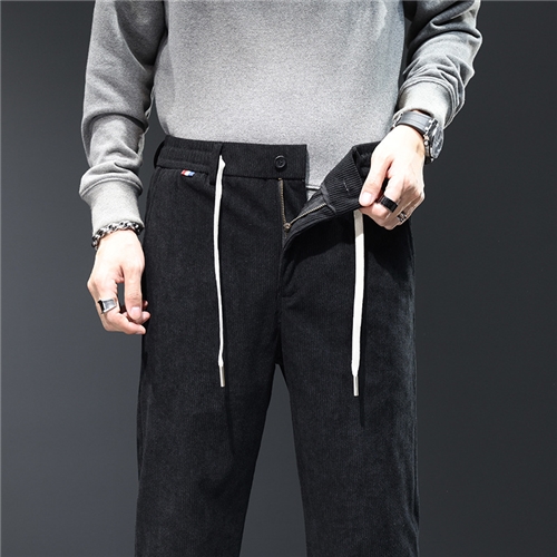 秋冬款灯芯绒男士休闲裤直筒宽松条绒西裤冬季加绒中年爸爸男裤子