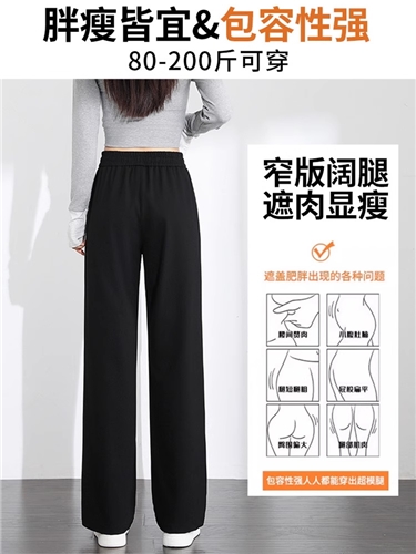 阔腿裤女2025新款大码宽松窄版直筒裤显瘦小个子女士休闲裤子