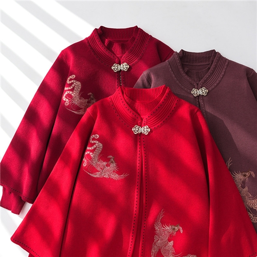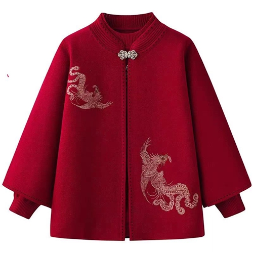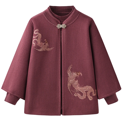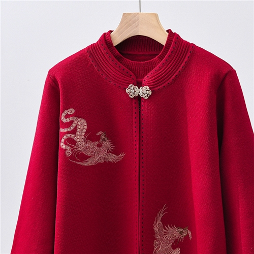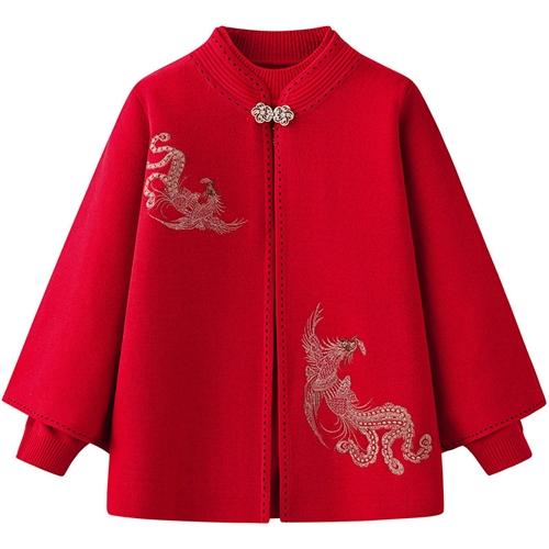 中老年人妈妈装秋冬装刺绣外套女老太太毛衣开衫奶奶装秋季两件套