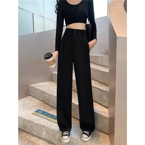 黑色阔腿裤女2024夏季薄款高腰垂感高级感直筒小个子西装拖地裤子