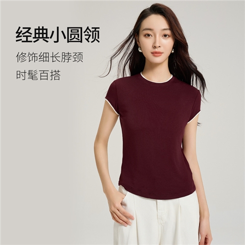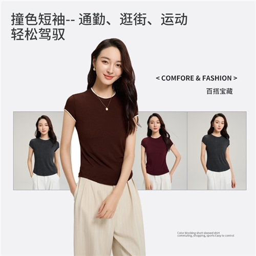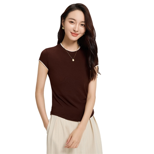 莱赛尔天丝羊毛短袖T恤女士韩版显瘦半袖上衣凉感拼接短袖打底衫