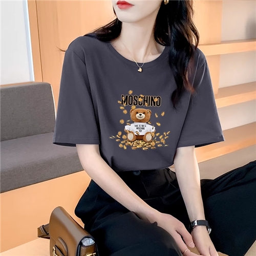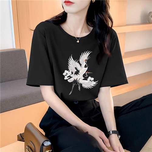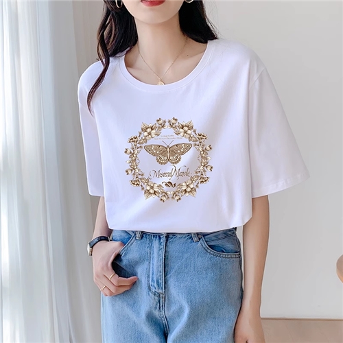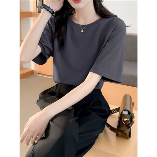 夏季短袖t恤女士宽松纯棉体恤休闲大码正肩圆领半袖