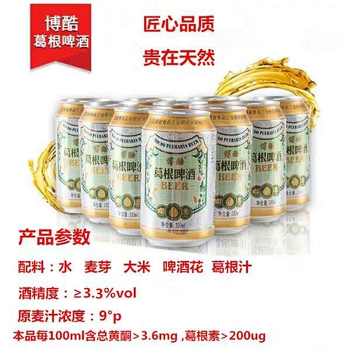 博酷葛根啤酒9度330ml*24听装 ,国家发明专利配方
