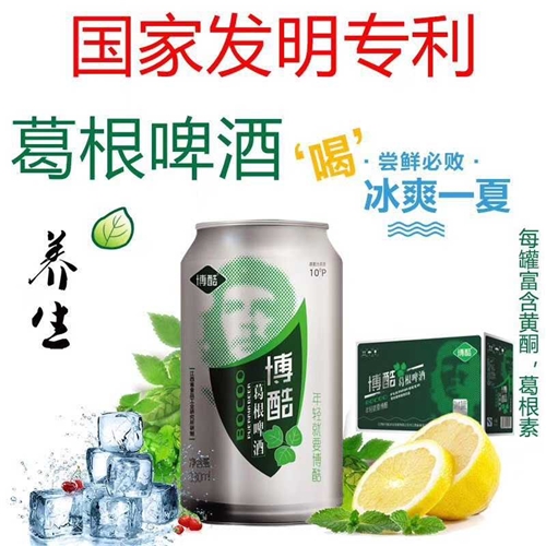 博酷葛根啤酒10度330ml*24听装 ,国家发明专利配方