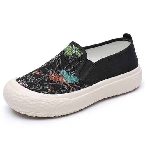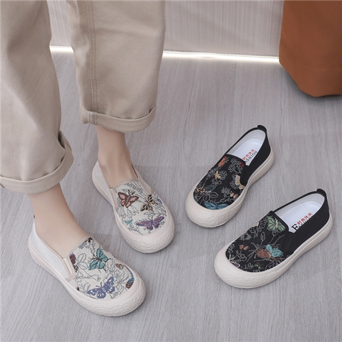 2024春季新款乐福鞋帆布女鞋懒人一脚蹬厚底渔夫鞋时尚休闲布鞋女