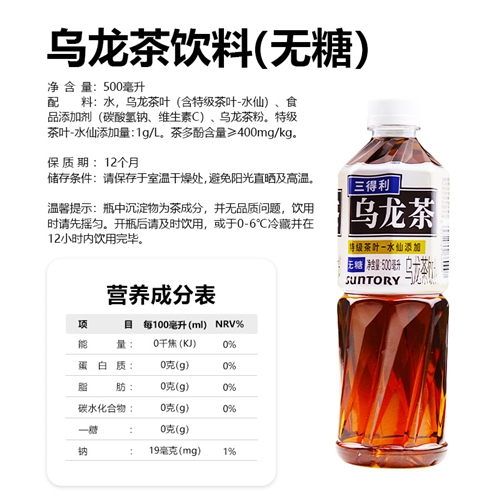 三得利无糖0脂乌龙茶饮品500ml*15瓶