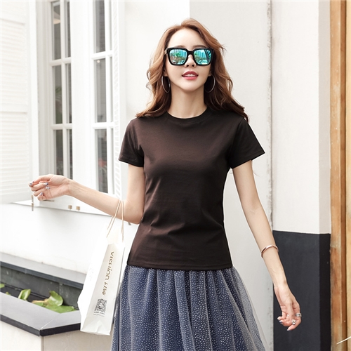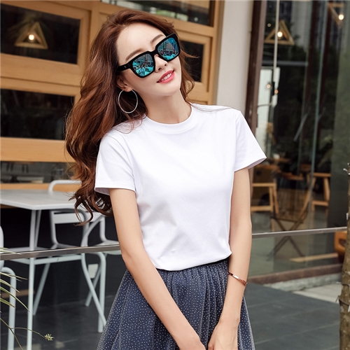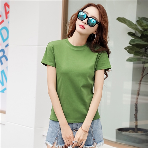 短袖t恤女打底衫夏白色修身小圆领上衣内搭抹茶绿新款