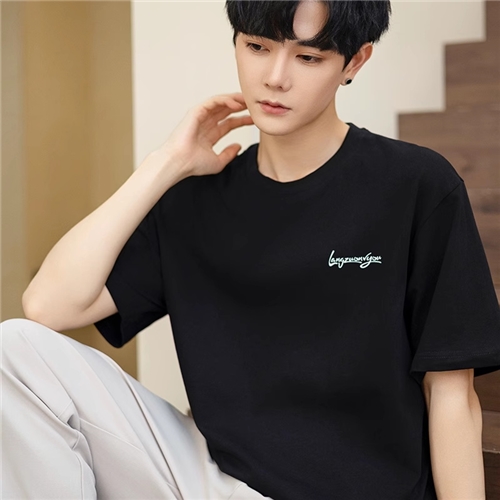 短袖t恤男士2025新款夏重磅纯棉半袖打底衫宽松美式潮牌黑色体恤