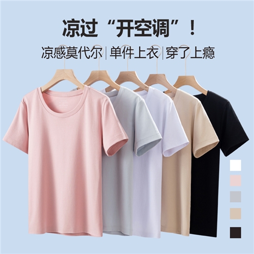 50支双面莫代尔凉感女夏季纯色正肩短袖t恤男女圆领7A抗菌