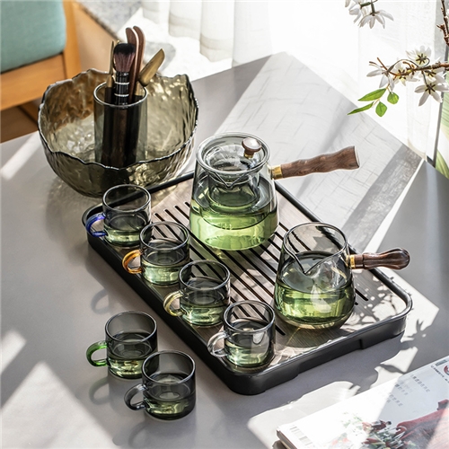 高硼硅透明玻璃家用办公室会客泡茶壶简约茶水分离侧把茶壶煮茶器茶具