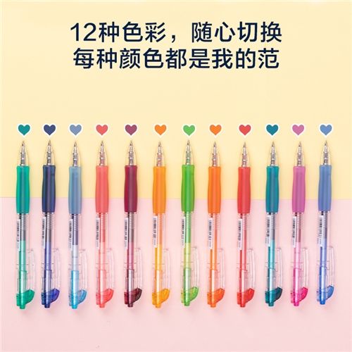 得力SA502按动彩色中性笔0.5mm子弹头(混)(12支/盒)