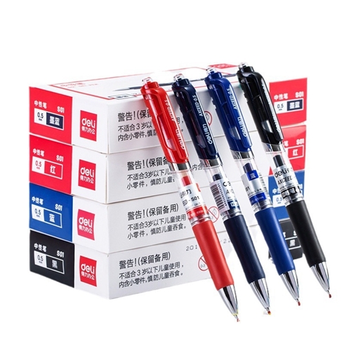 得力按动中性笔黑色水笔教师红笔按动式系列签字笔水性笔墨蓝色
