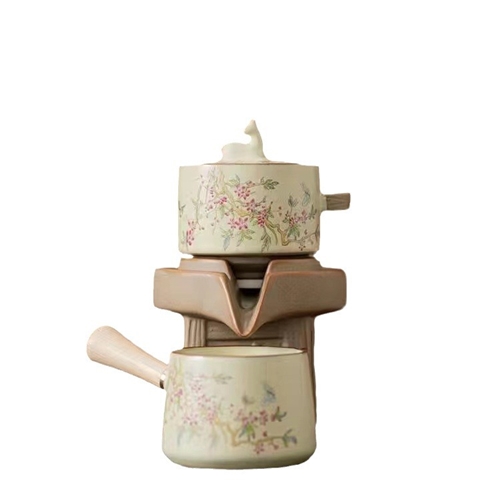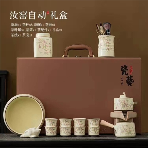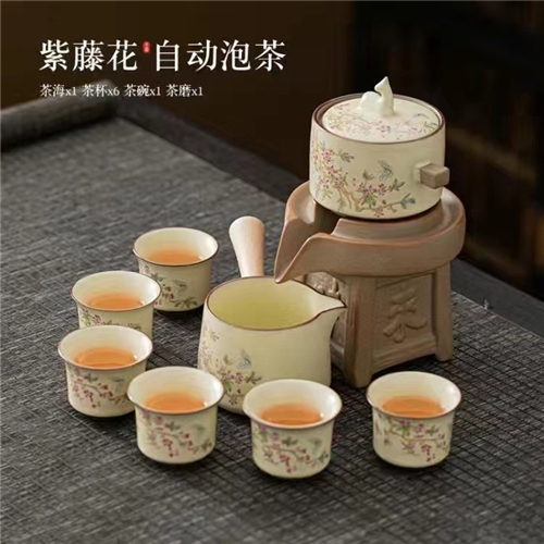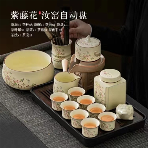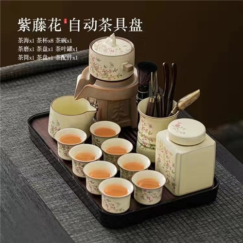 米黄汝窑紫藤花懒人自动功夫茶具套装陶瓷家用防烫泡茶器伴手礼品