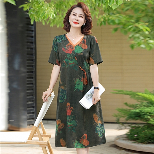 2025新款连衣裙长袖连衣裙时尚新款印花碎花大码遮肚显瘦中长裙子