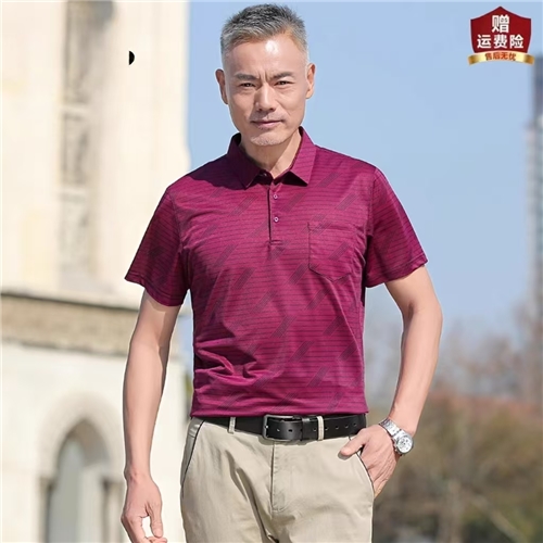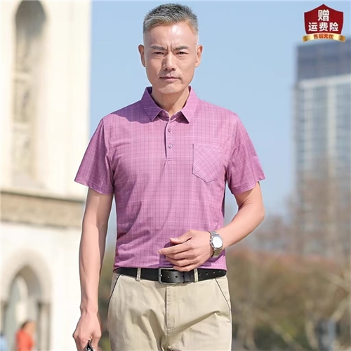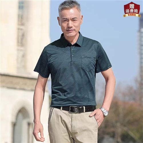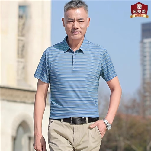 夏季冰丝polo衫中年男士短袖t恤翻领中老年人爷爷上衣