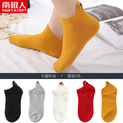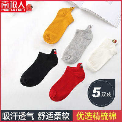 南极人女士船袜笑脸刺绣低帮纯棉透气袜子5双