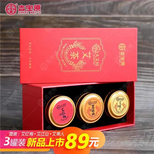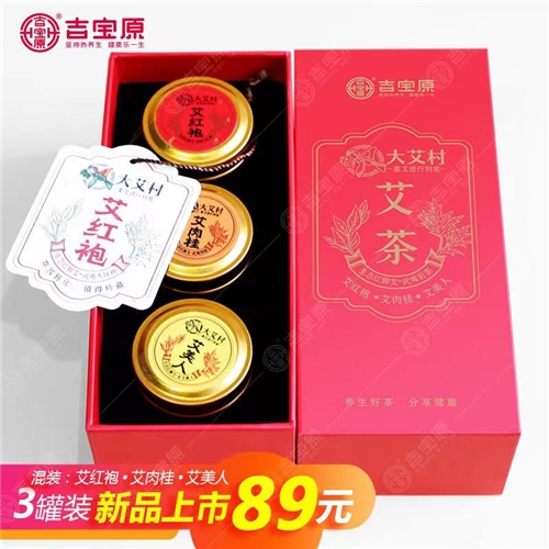 吉宝原大艾村纯正艾茶,姜艾进行到底。纯手工制作,五晒五制,茶汤清澈,入口顺滑,回甘生津。常喝艾茶,祛湿益阳,滋肺阴,温胃健脾,红脚艾茶与武夷岩茶揉捻搭配,成就养生好茶。